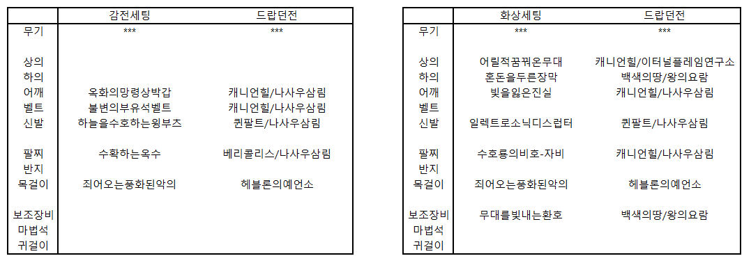 명속성 올인세팅을 했는데 오늘은 암속성약점인 던전을 파밍해야한다면...