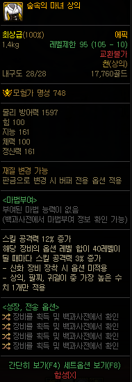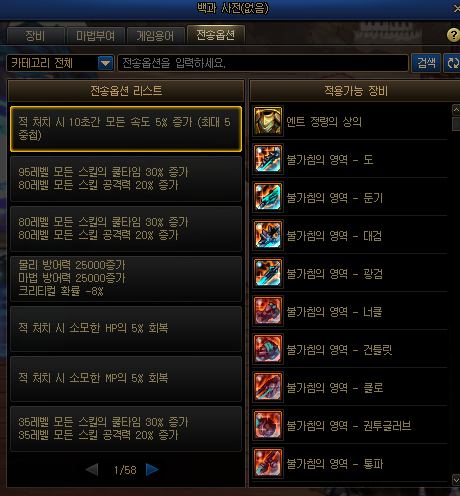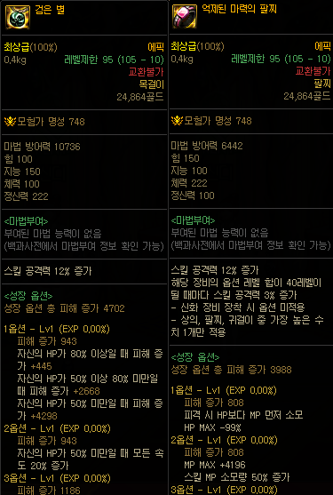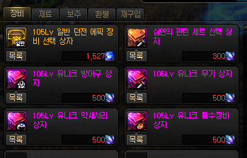 장비사전을 열고 105레벨 에픽장비는 어떤것이 있는지, 어떤 옵션이 있는지