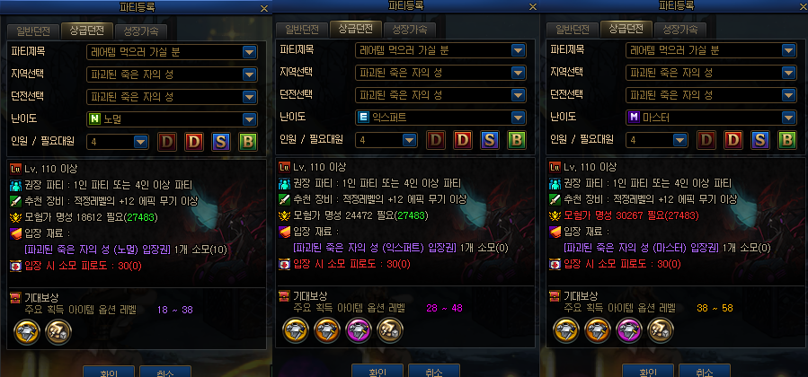 빠르게 마스터난이도를 입성하는 것이 중요합니다.